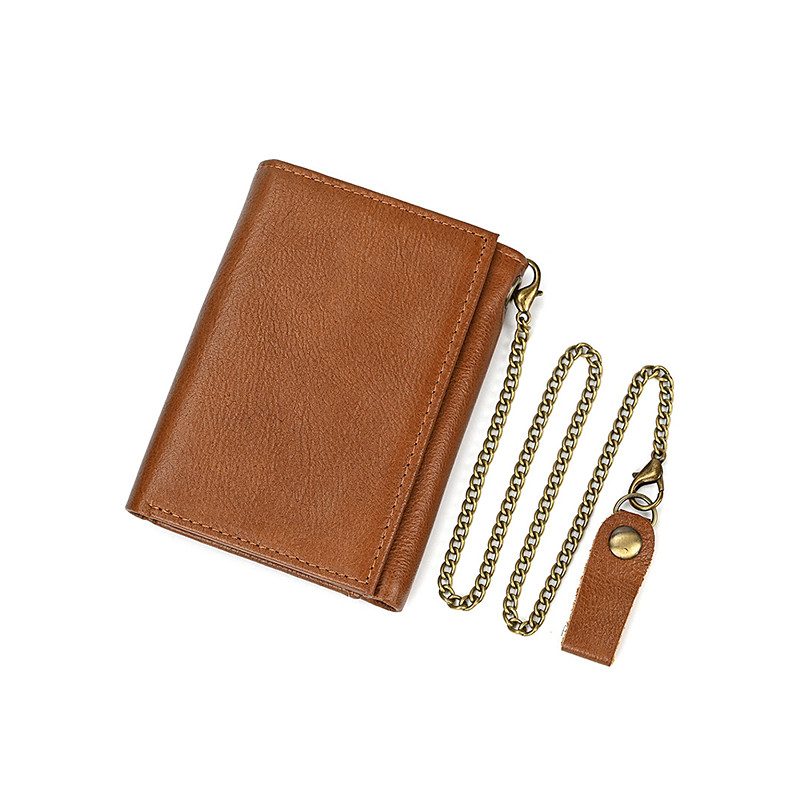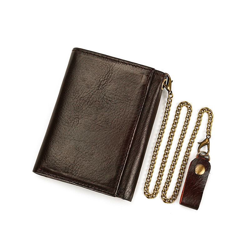 Men's Genuine Leather Wallet with Key Slot Chain, Vintage Bifold Card Holder, Multi-Functional Coin Purse for Daily Use Travel