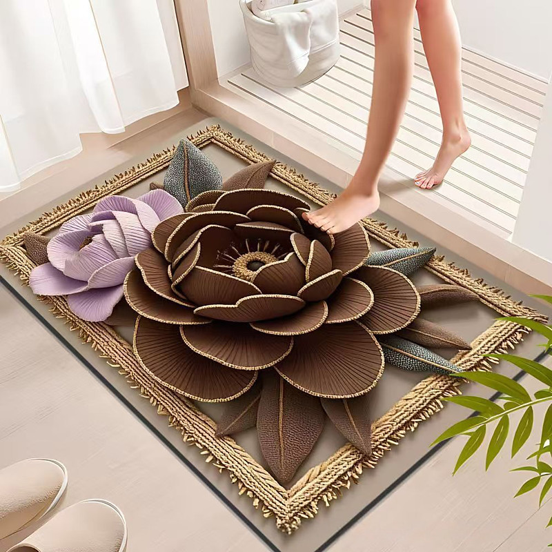 Doormat Diatomaceous Earth Mat Non-Slip Bathroom Floor Mat Water Flower Design Easy Care Entrance Kitchen Rug Absorbent Quick-Drying for Home Use