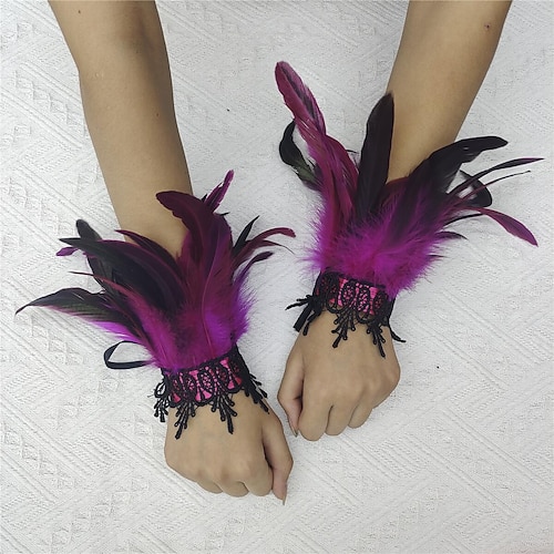Accessori Samba del Carnevale 2026 Rio Carnevale Guanti in Pizzo di Piume Gotici per Donne Lunghi Guanti Senza Dita in Rete con Piume Naturali Costume per Performance al Festival del Brasile