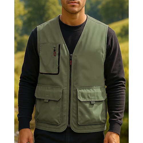 Per uomo Gilet da pesca Gilet multifunzionale Senza Maniche Gilet Esterno Leggero Traspirante Cerniera Poliestere Nero Bianco Verde militare Caccia Pesca Arrampicata