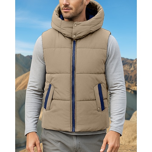Per uomo Gilet imbottito Gilet con cappuccio Gilet Gilet trapuntato Giornaliero Appuntamento Da mare Di tendenza Informale Autunno inverno Tasche Poliestere Tenere al caldo Comodo Tinta unica Cerniera
