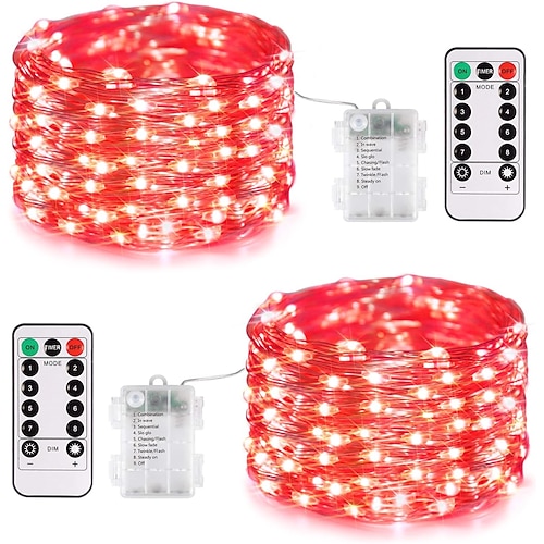 2 pezzi 20 m/66 piedi 200 perline a led per Natale Halloween matrimonio festa festival luci a stringa fata per interni ed esterni decorazione festival stringa di luci a batteria impermeabile AAA