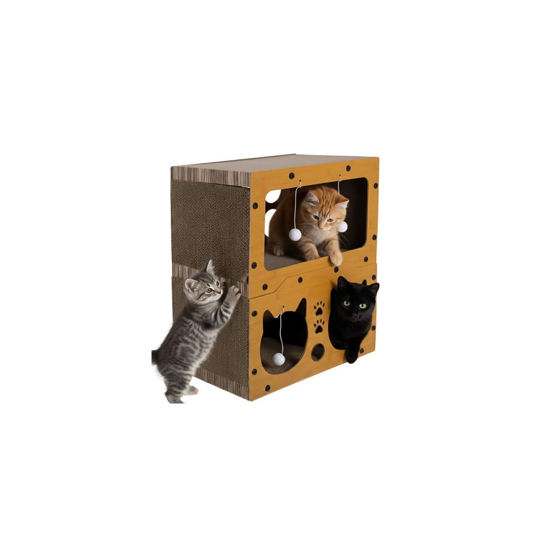 Kradsetræ til katte – 2-etagers miljøvenligt HDF-hus