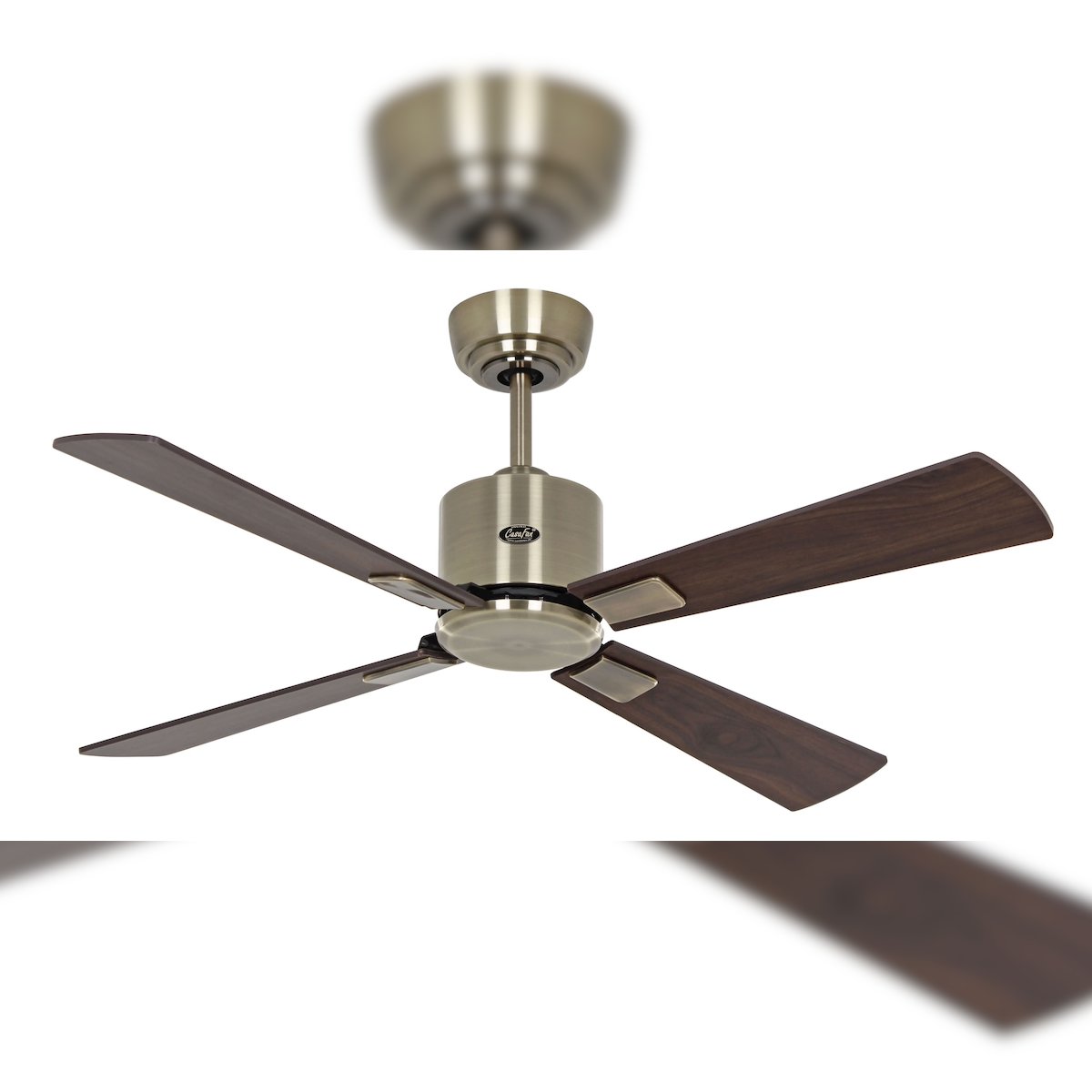 eco neo III 92, wlan-ventilator ohne licht, gehäuse aus antikem messing, flügel aus buche und ahorn, casafan