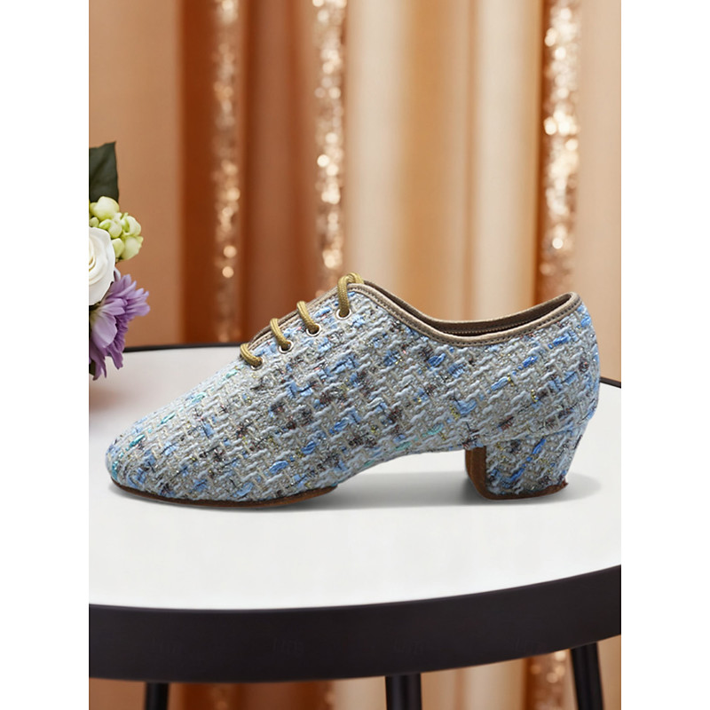 Women's Tweed Lace-Up Low Heel Dance Shoes - Comfortable Performance Oxfords for Kids Teens' Stage Shows and School Recitals