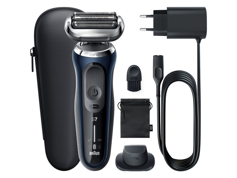 Braun Series 7 71-B1200s, Folienschaber, 360° Flex, Edelstahl, Tasten, Blau, LED