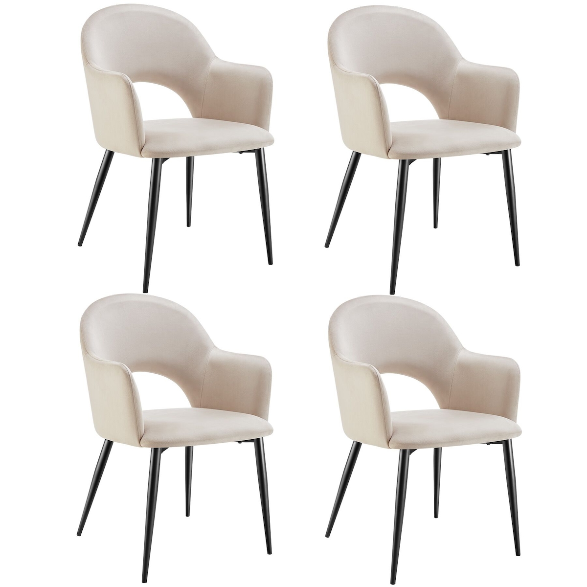 TECTAKE Armlehnstuhl Sachel, Samtoptik, gepolstert, 120 kg 4er Setcreme