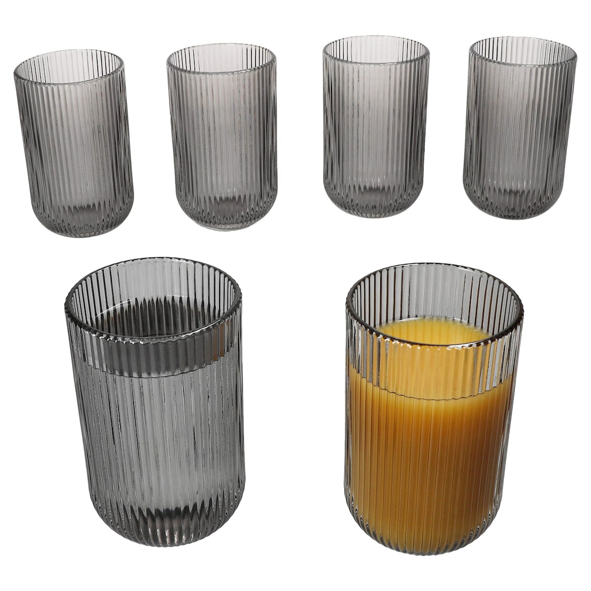 Agata 6x Longdrinkgläser grau 360ml Glas Relief Cocktails Saft Limo Dessert-Glas