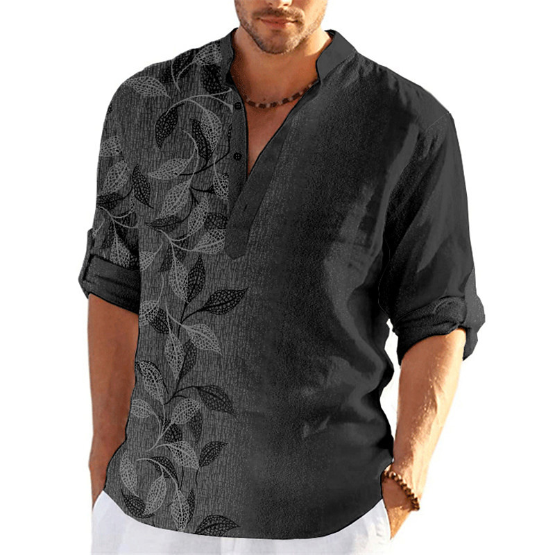 Men's Leaves Shirt Button Up Shirt Long Sleeve Fashion Streetwear Designer Casual Going out Summer Spring Fall Stand Collar Print Blue Purple Green Khaki Gray