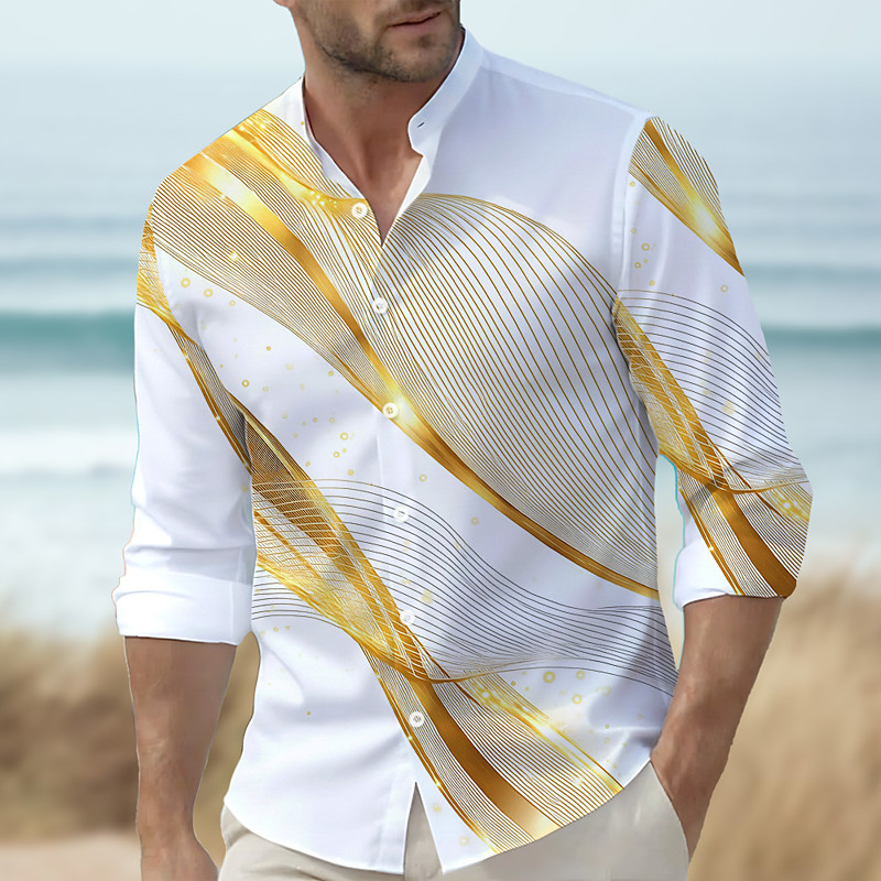 Men's Geometric Gradient Lines / Waves Shirt Stand Collar Shirt Casual Dress Shirt Long Sleeve Business Casual Vacation Home Daily Summer Spring Mandarin Collar Band Collar 3D Print Button Up Shirts