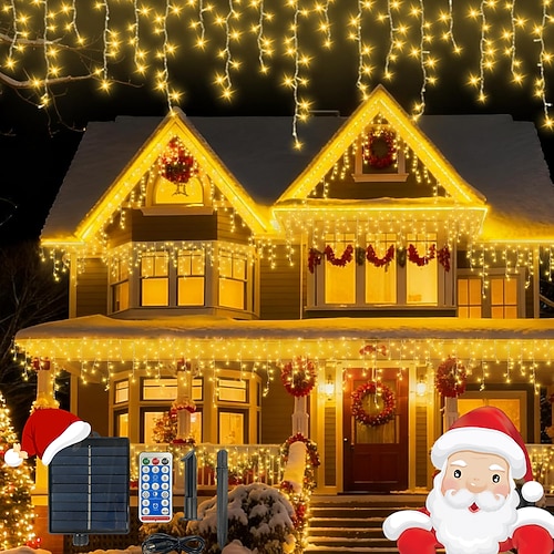 Luci a ghiacciolo solari impermeabili 10m 400 LED 48 gocce luci decorative collegabili a filo chiaro timer telecomando luci per cortile balcone albero portico