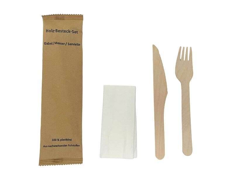 250x Bestecksets Holz Messer Gabel Serviette braun