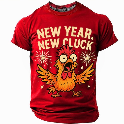 New Year New Cluck Funny Chicken Shirt, Chaos Meme Rooster Party Graphic Tee for Men, Holiday Humor T-shirt Gift, Clothing Apparel S M L XL XXL XXXL