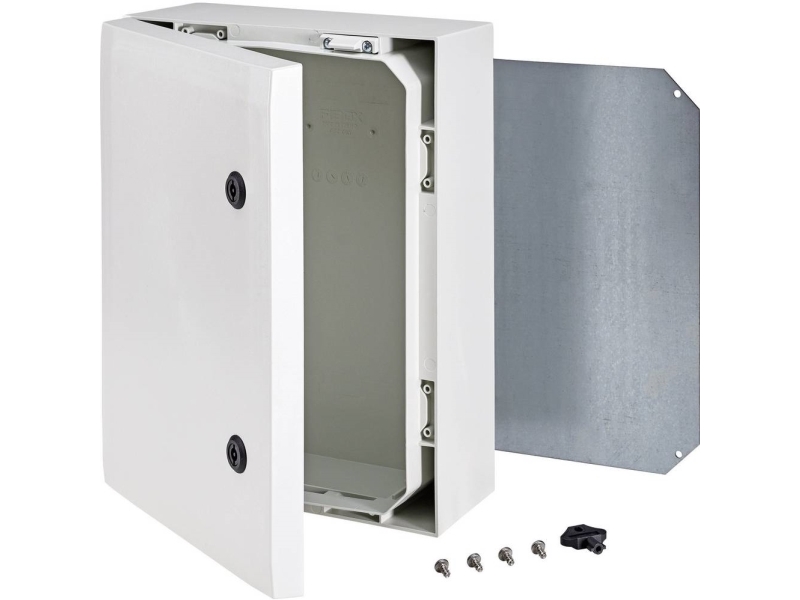 FIBOX Seinäkaappi ARCA, polykarbonaatti, harmaa ovi, 2 lukitusta, sarana lyhyellä sivulla, KxSxK, 400x600x210mm, asennuslevyllä varustettuna