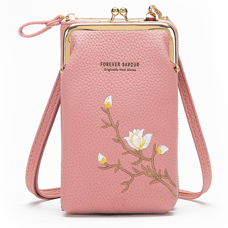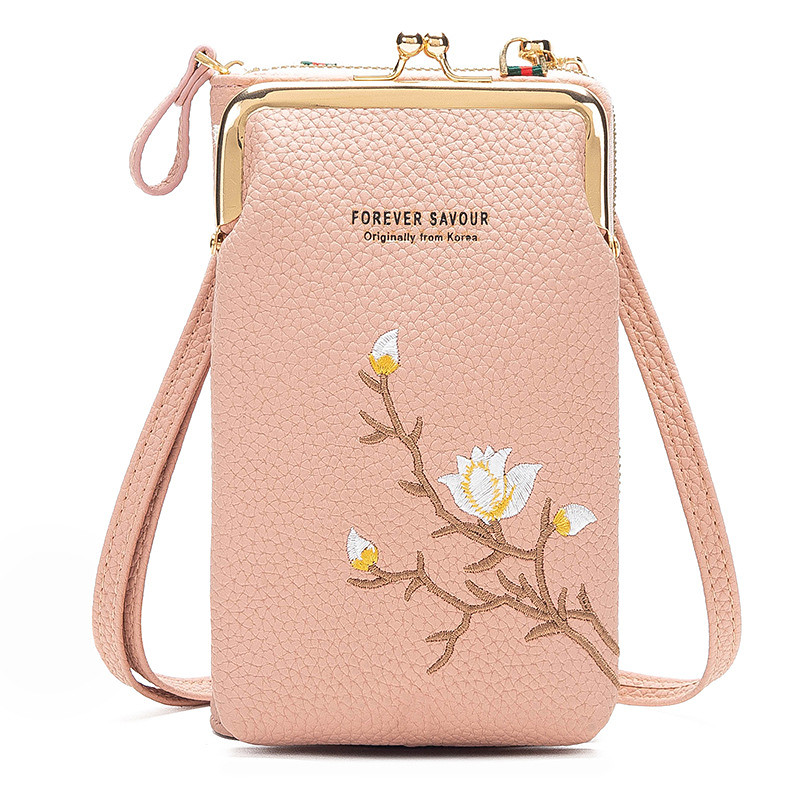 Women Sling Cross-Body Wallet with Mobile Cell Phone Holder Stylish Embroidered Mini Shoulder Bag Multifunctional Ladies Purse Casual Fashion Small Crossbody Handbag for Daily Use