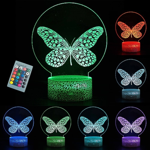 Schmetterlings-Nachtlicht, Geburtstagsgeschenk für Mädchen, 3D-Illusionslampe, Kinder-Nachttischlampe mit 16 wechselnden Farben, Fernbedienung, Schmetterlingsspielzeug, Mädchengeschenke