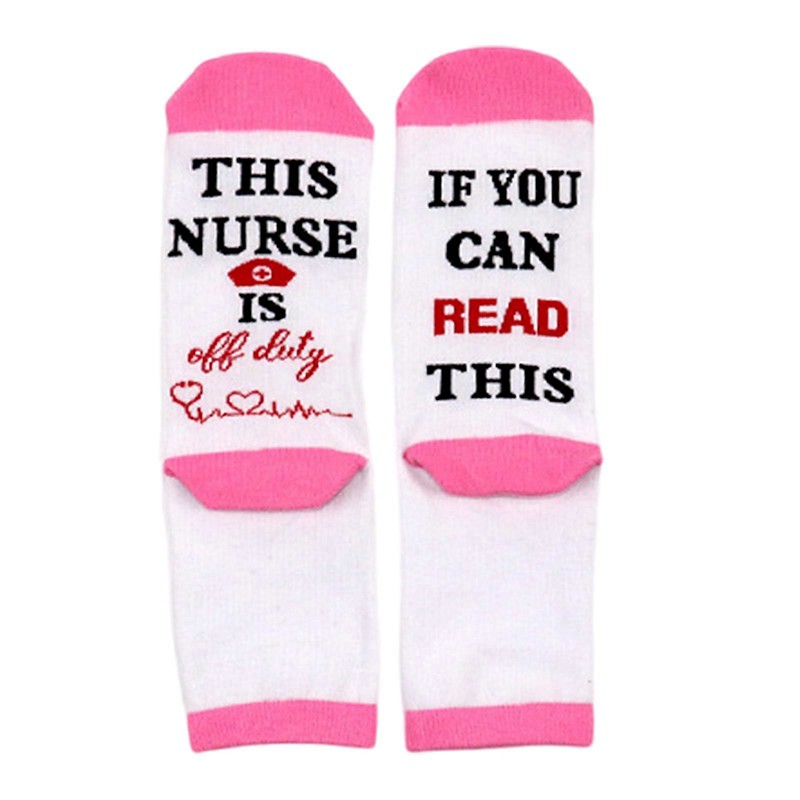 If You Can Read This Off-Duty Nurse Socks Funny Jacquard Novelty Crew Socks for Nurses, Cozy Gift Socks for Work Break, Night Shift, Birthday, Christmas