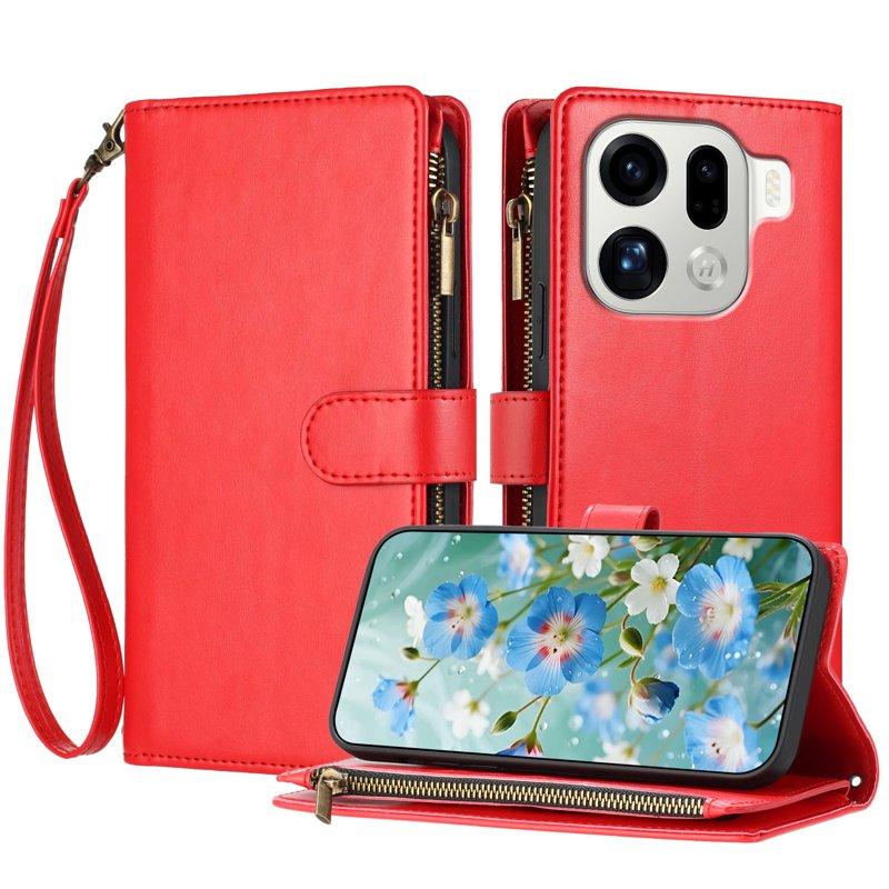 Oppo Find X9 Pro 5G Plånboksfodral Konstläder Med Dragkedja - Röd