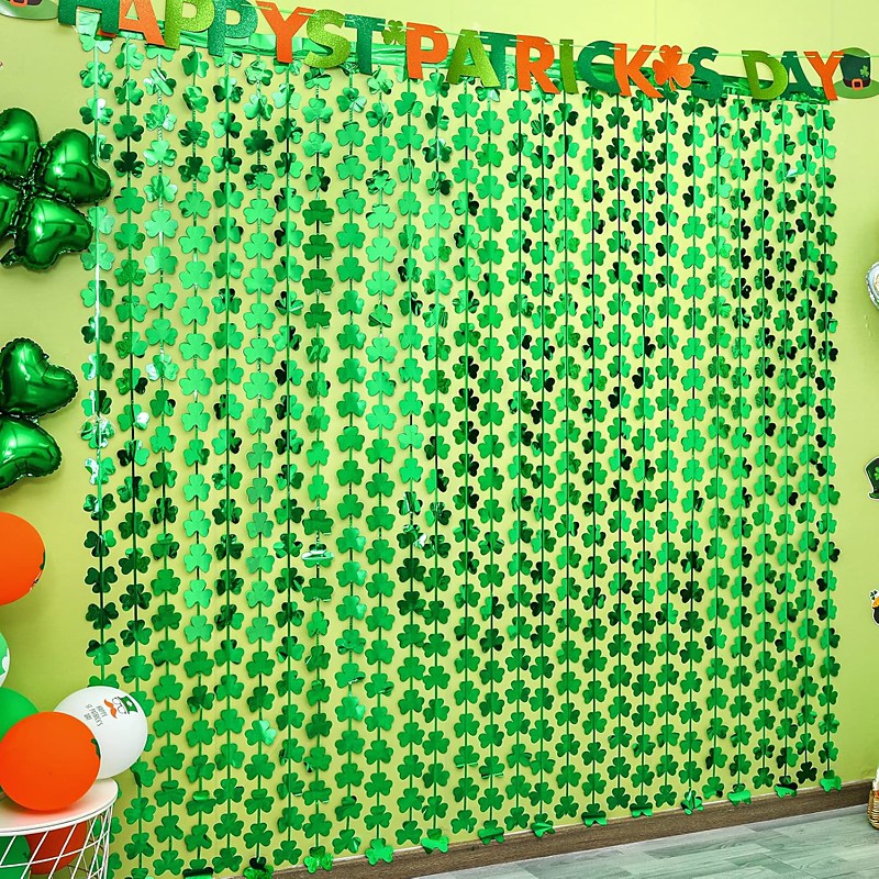 3pcs St. Patrick's Day Foil Fringe Curtains Lucky St Patricks Day Party Decorations 3.3 x 6.6 ft Shamrock Metallic Tinsel Photo Booth Props Backdrop Streamer for Irish Party Door Decors
