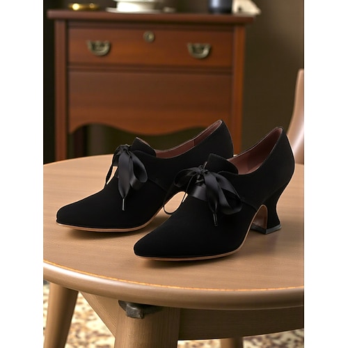 décolleté da donna in pelle scamosciata verde con fiocco nero, elegante punta affilata, stile vintage anni '20, perfette per eventi formali, cene e matrimoni