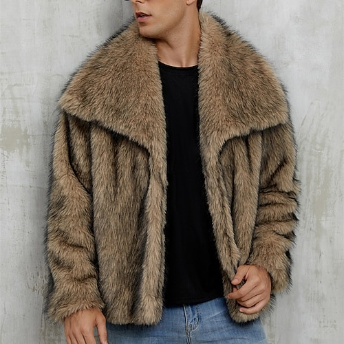 Per uomo Giacca Casual Cappotto in Pelliccia Sintetica Vacanza Quotidiano Calore Termico Felpato Autunno Inverno Semplice Moda Streetwear Bavero Lungo Marrone Giacca