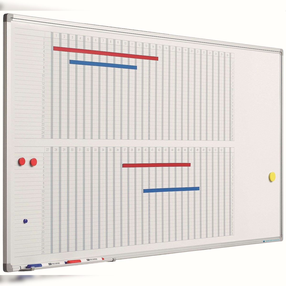 PROREGAL 53-Wochen-Planer magnetisches Whiteboard Slim, HxB 60x120cm, 8mm-Platte, inkl. Befestigungsmaterial & Stiftablage, Sublimationsstahl, Weiß