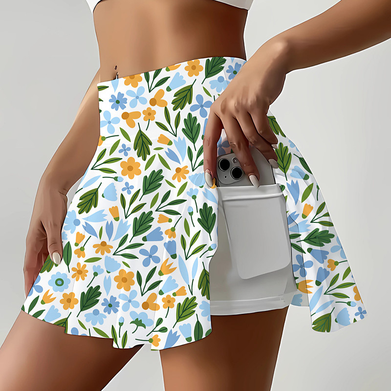 Women's Floral Tennis Skirts with Shorts Pleated Quick Dry Tennis Golf Badminton Skort White Yellow Pink Tennis Clothing