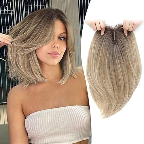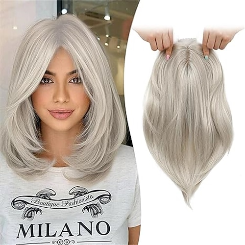 Topper per capelli da 12 pollici per donne con capelli radi, topper sintetico con base larga da 6,5x6,5 con frangia, parrucche in fibra per capelli da donna per uso quotidiano, lavoro, feste -