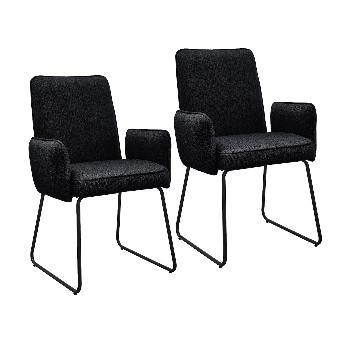 SVITA ALBA 2er Set Esszimmerstühle Armlehnstuhl Polsterstuhl Stoffbezug Schwarz