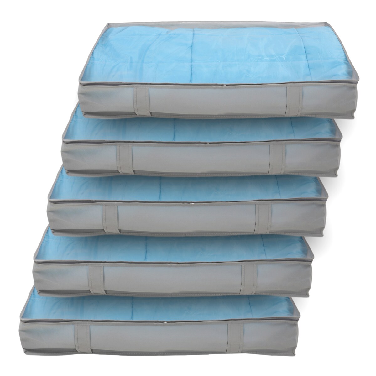 SVITA 5er Set Aufbewahrungstasche M faltbare Unterbettkommode Sichtfenster Griffe Reißverschluss Stoff Hellgrau
