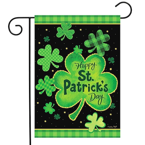Gartendekoration zum St. Patrick's Day mit Elfen-Kleeblatt und Flaggenmotiv für Terrasse, Garten und Rasen