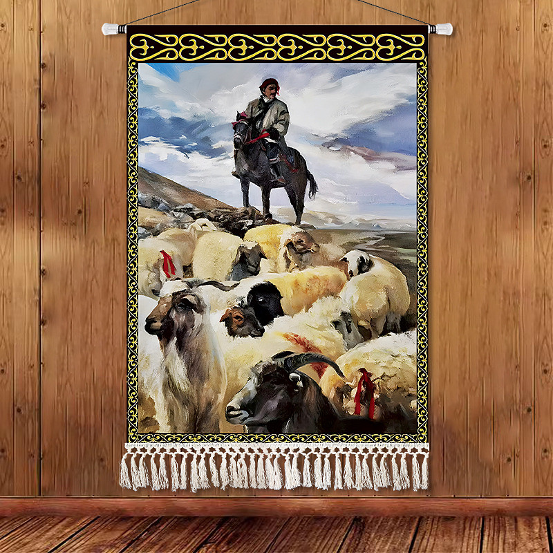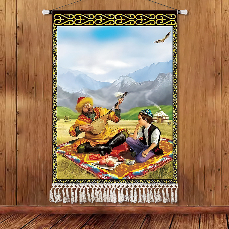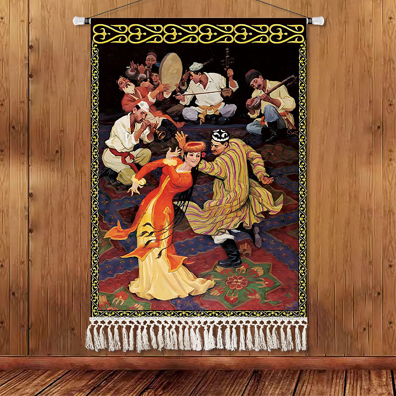 Beauty Uyghur Ethnic Style Wall Tapestry, Artistic Background Decoration, Boho Hanging Art for Bedroom, Living Room, or Cafe