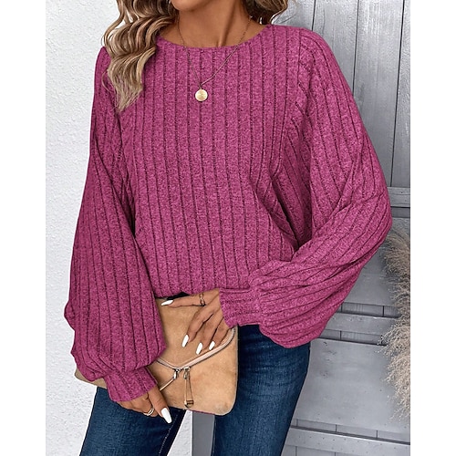 Per donna Maglietta Semplice Casual Manica Lunga Girocollo Top Regolari Quotidiano Uscire Weekend Nero Bianco Rosa Verde militare Marrone Autunno Inverno