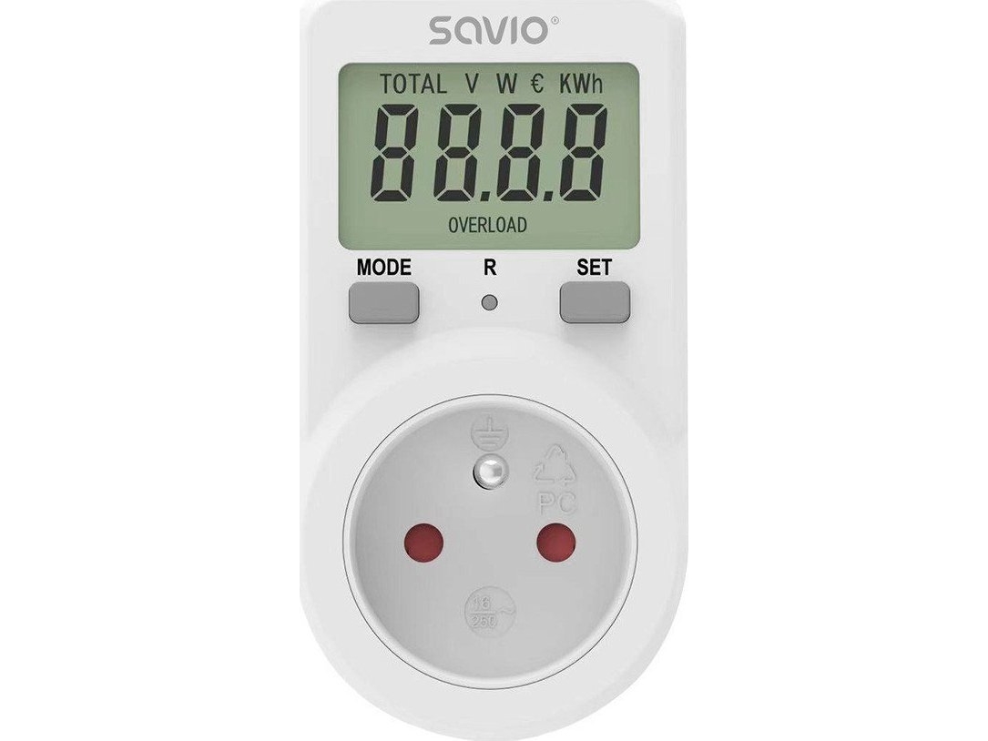 Savio AE-02 wattmeter White Plastic Built-in display LCD 3680 - 3680 W