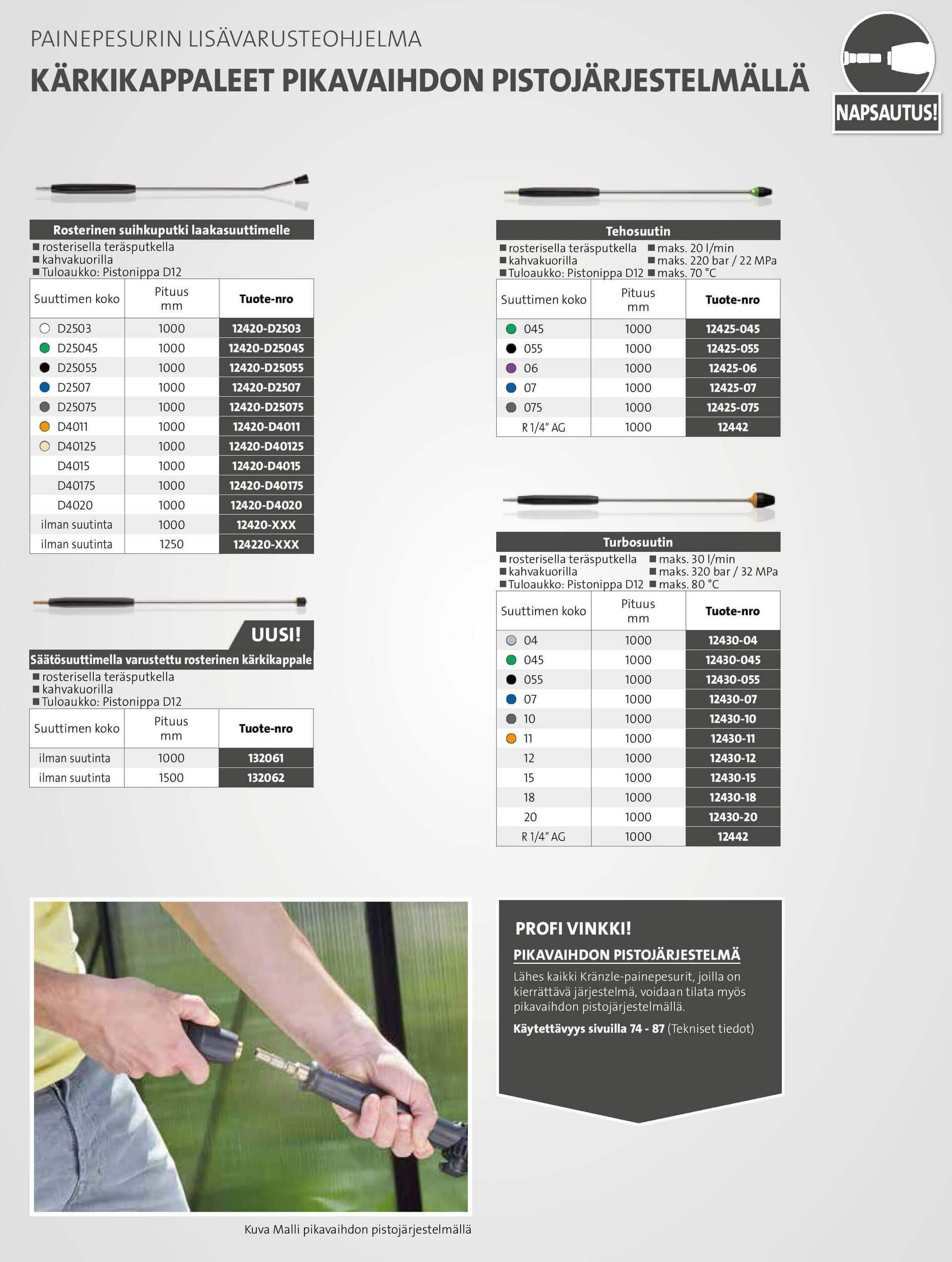 Kränzle Tehosuutin otepintaisella suihkup. 1000 mm pistonipalla ja 07 suutin