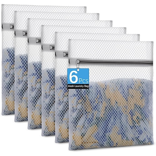 Confezione da 6 sacchetti per il bucato in rete a nido d'ape per capi delicati - Sacchetti per il lavaggio medi da 12x16 pollici per reggiseni, lingerie, calzini, vestiti per neonati - Protezione per