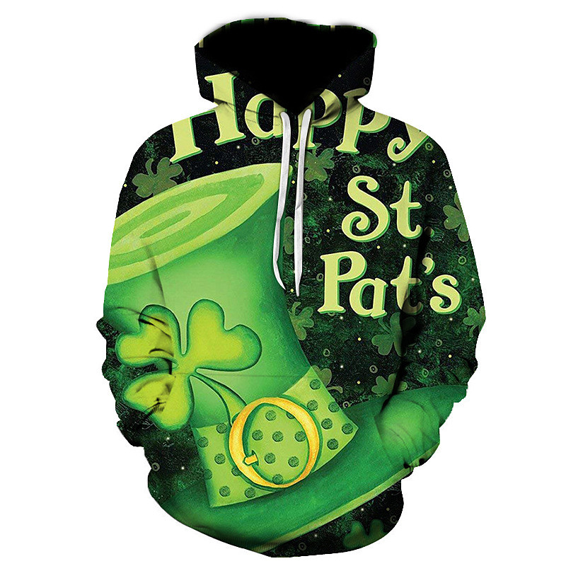 St. Patrick's Day Herren-Pullover, Kapuzenpullover, Sweatshirt, florale Grafikdrucke, Saint Patrick Day-Druck, Kapuze, täglicher Urlaub, 3D-Druck, 3D-Druck, lässige Kapuzenpullover, Sweatshirts,