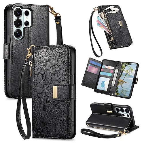 Handy Hülle Handyhüllen Für Samsung Galaxy S26 Ultra Plus S25 S24 S23 Ultra Plus S24 FE S22 Plus Ultra A55 5G A35 5G A25 A15 Flip-Cover Mit Ständer mit Trageriemen Mit Handgelenkschlaufe Retro TPU