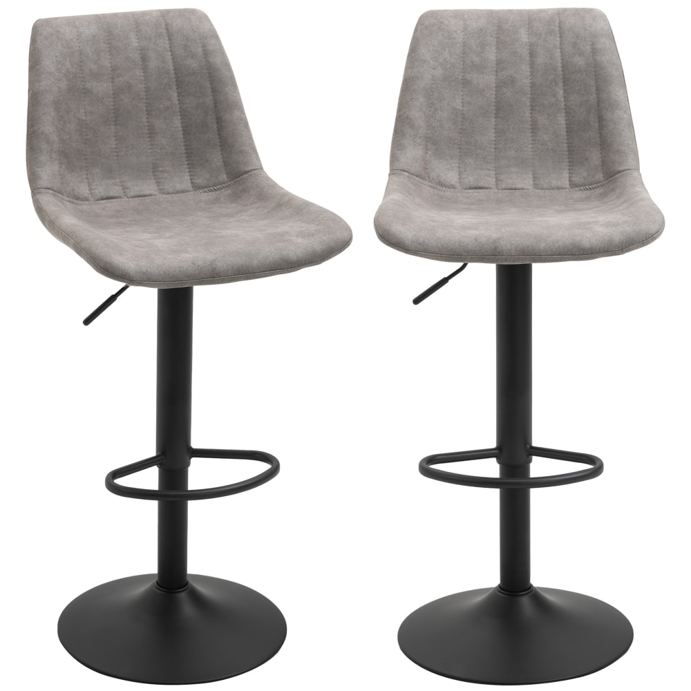 Homcom Set 2 Sgabelli Bar con Altezza Regolabile, Sgabelli Cucina Alti con Schienale, Poggiapiedi e Seduta Morbida, Struttura in Metallo, Sedie Bar Alte Girevoli a 360°, per Penisola, Grigio Aosom Italy