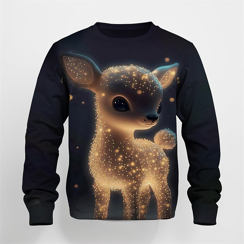 Boys 3D Graphic Animal Deer Sweatshirt Long Sleeve Spring Fall Fashion Basic Kids 4-12 Years Crew Neck Outdoor Casual Daily Regular Fit