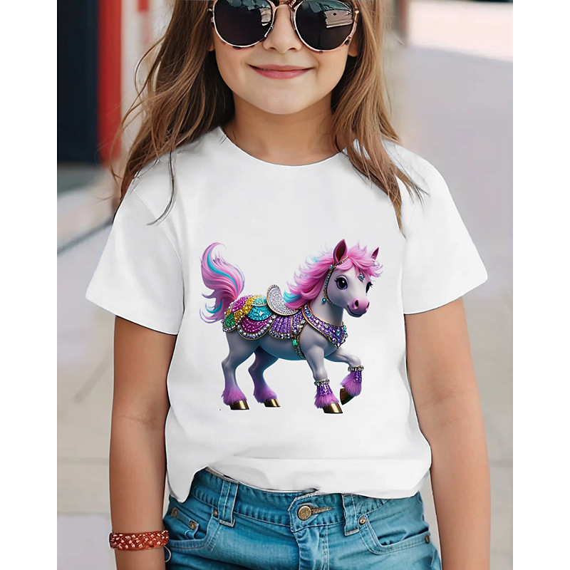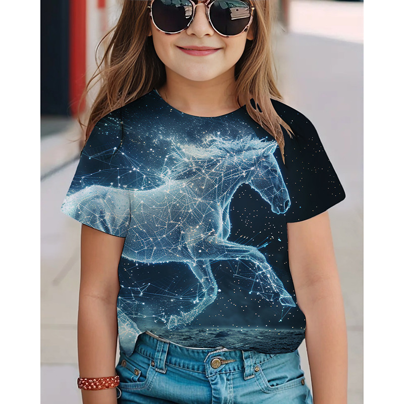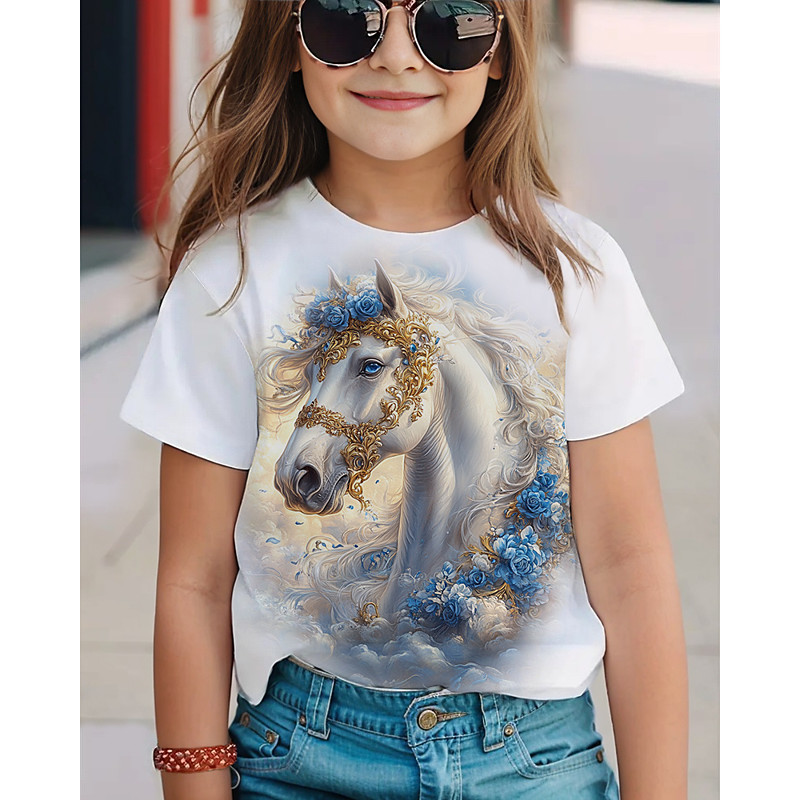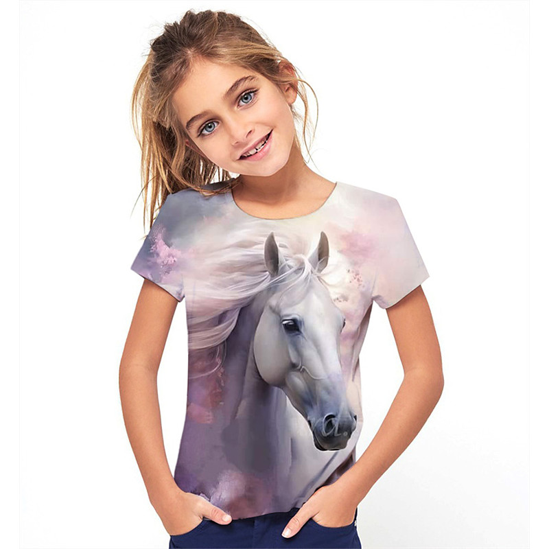 Girls' 3D Horse T shirt Tee Short Sleeve Summer Spring Fashion Basic Kids 4-12 Years Crew Neck Outdoor Casual Daily Regular Fit