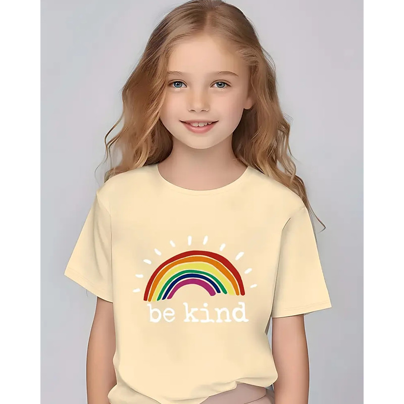 Girls' 3D Rainbow T shirt Tee Short Sleeve Summer Spring Fashion Basic Kids 4-12 Years Crew Neck Outdoor Casual Daily Regular Fit