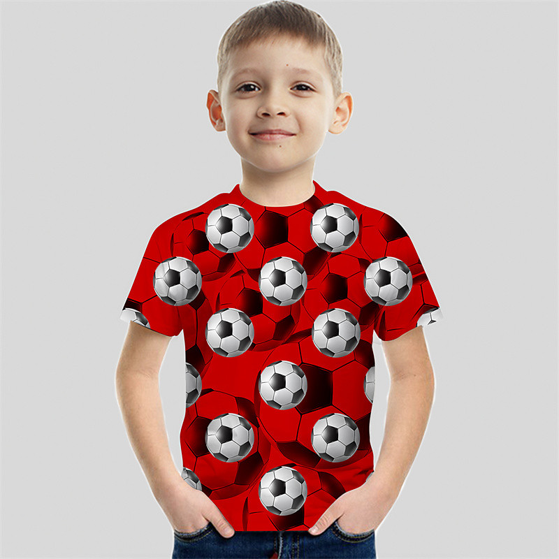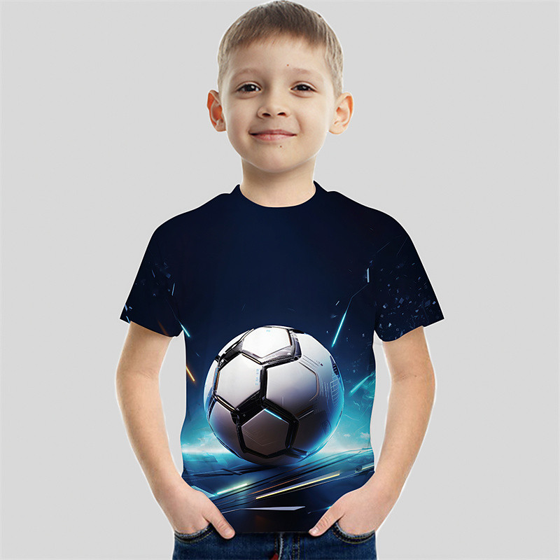 Boys 3D Football T shirt Tee Short Sleeve Summer Spring Fashion Basic Kids 4-12 Years Crew Neck Outdoor Casual Daily Regular Fit