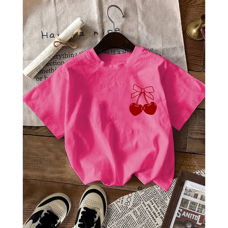 Girls' 3D Graphic Tee Short Sleeve Summer Spring Fashion Basic Kids 4-12 Years Crew Neck Casual Daily Outdoor Regular Fit