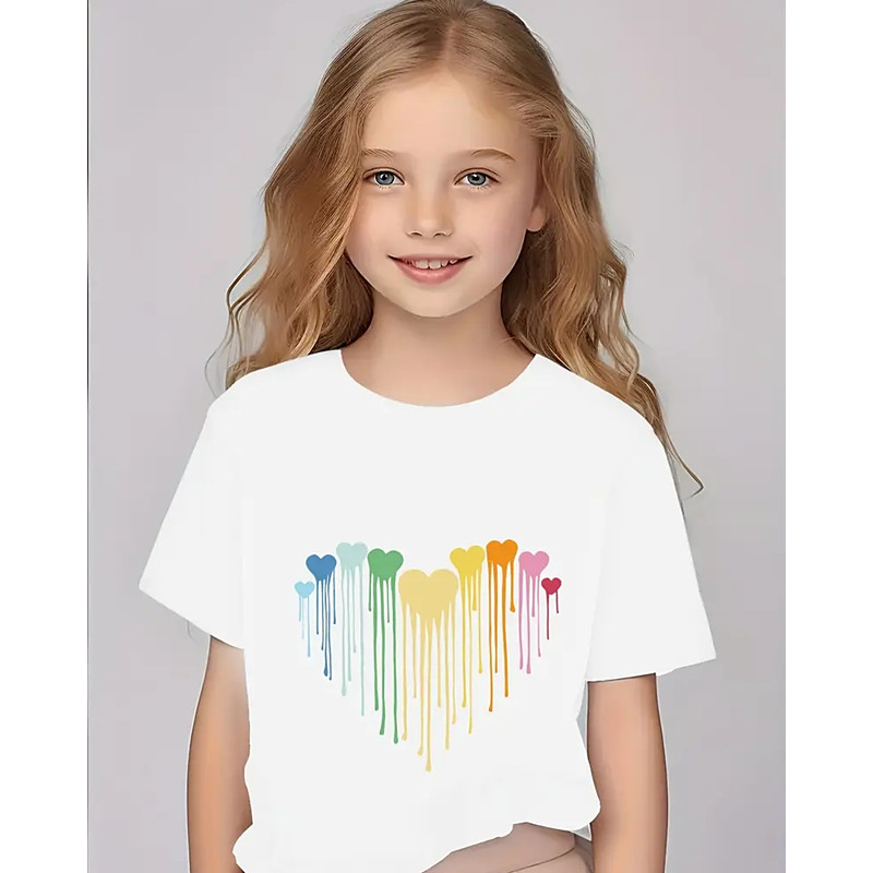 Girls' 3D Heart T shirt Tee Short Sleeve Summer Spring Fashion Basic Kids 4-12 Years Crew Neck Outdoor Casual Daily Regular Fit