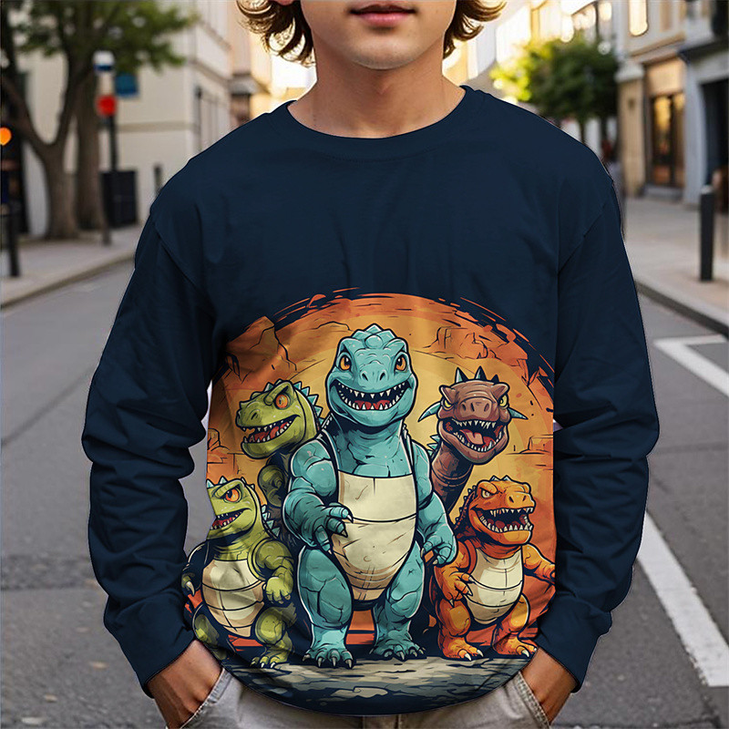 Boys' 3D Dinosaur T shirt Tee Long Sleeve Spring Fall Fashion Basic Kids 4-12 Years Crew Neck Outdoor Casual Daily Regular Fit