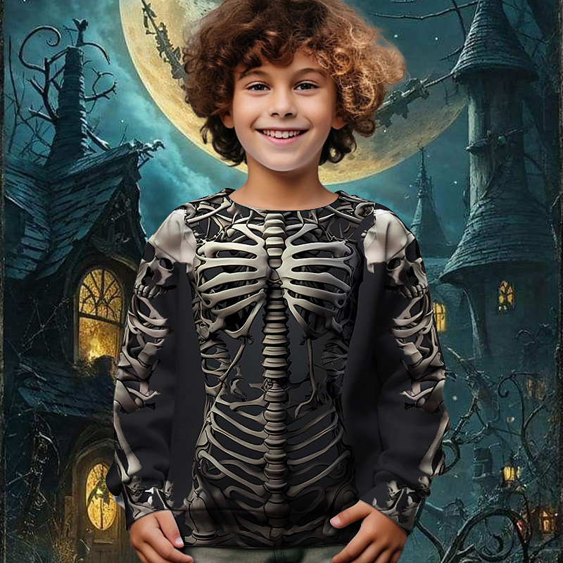 Halloween Boys' 3D Skull Sweatshirt Long Sleeve Spring Fall Fashion Basic Kids 4-12 Years Crew Neck Outdoor Casual Daily Regular Fit