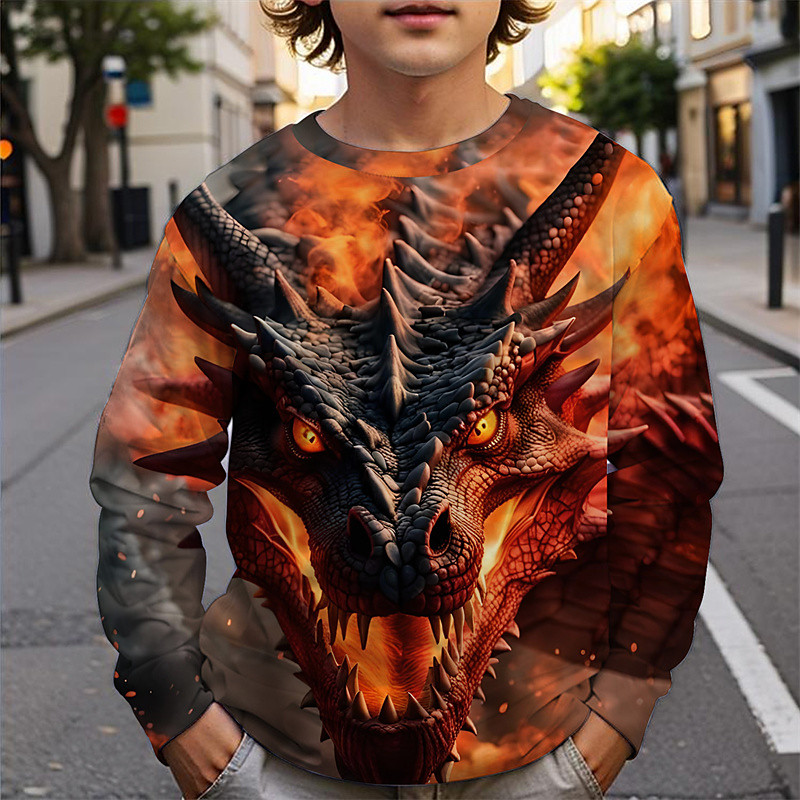 Boys' 3D Dinosaur Snowman Sweatshirt Long Sleeve Spring Fall Fashion Basic Kids 4-12 Years Crew Neck Outdoor Casual Daily Regular Fit