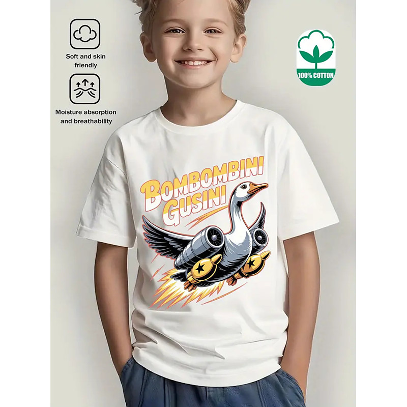 Cotton Kids Boys' Blue Black White Bombombini Gusini Graphic T shirt Blouse Crew Neck Short Sleeve Outdoor Dailywear Fashion Streetwear Designer Printing Summer