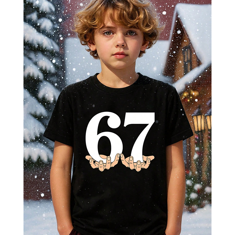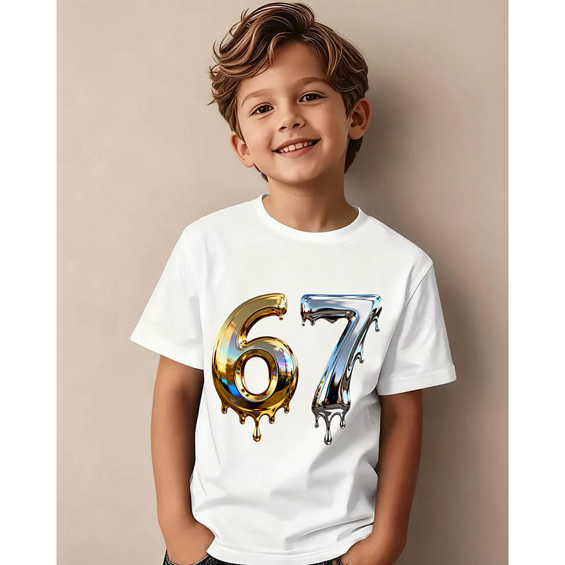 Cotton Kids Boys' Black White Graphic Funny Slang 67 T shirt Blouse Crew Neck Short Sleeve Outdoor Dailywear Fashion Streetwear Designer Printing Summer